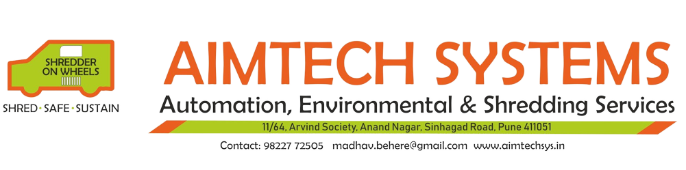 Aimtech System Proprietorship Firm Started Way Back In 2007 By Madhav Behere As Automation Consultant Providing Solution To Various Engineering And Government Sectors. He Developed First Injection Syringe & Needle Disposing Machine. This Was Seed Of Business In Waste Management. As A Logical Extension To This, In Year 2017 Mr. Kaivalya Behere M Sc (Environmental Science) Joined This Business. We Both Decided To Do Some Activity Related To Waste Management. We Noted That Handling Of Paper Record & Its Destruction In Environmental Friendly Way Was Neglected Area. Most Of The Industries And Other Businesses Were Facing Problem Of 1) Maintain Record 2) Storage 3) Destruction Without Affecting Environment & Confidentiality This Was The Seed For New Business. We Have Purchased Vehicle Mounted Shredder. We Started Shredding Service To Various Industries, Banks & Hospitals. This Idea Got Tremendous Response In Various Industrial & Commercial Business Sectors For Our “On Site Document Shredding Services”